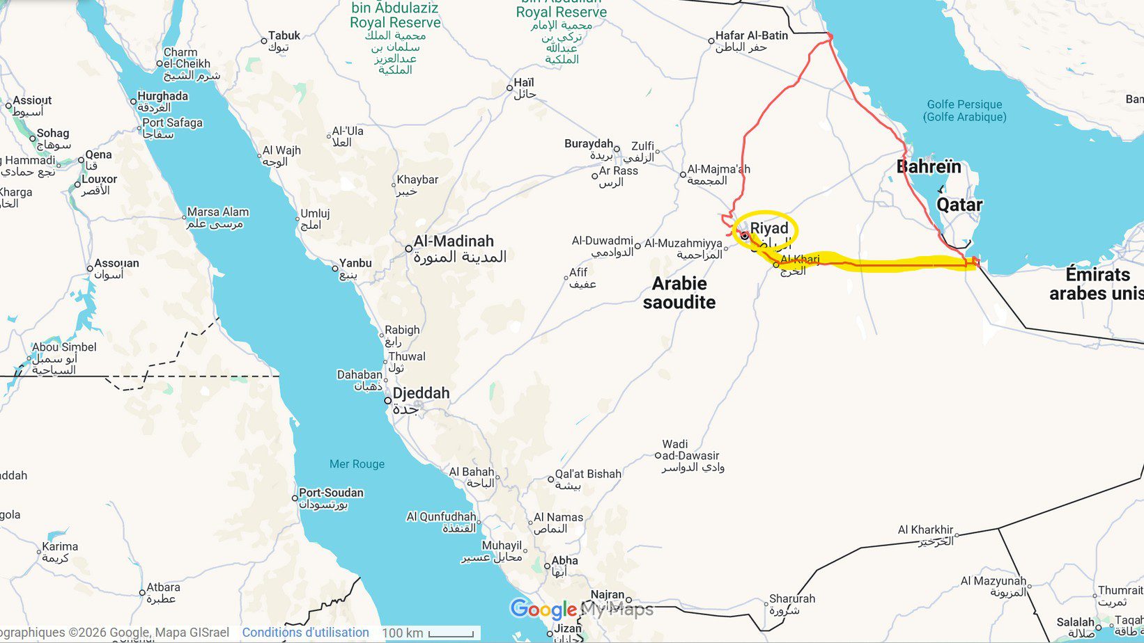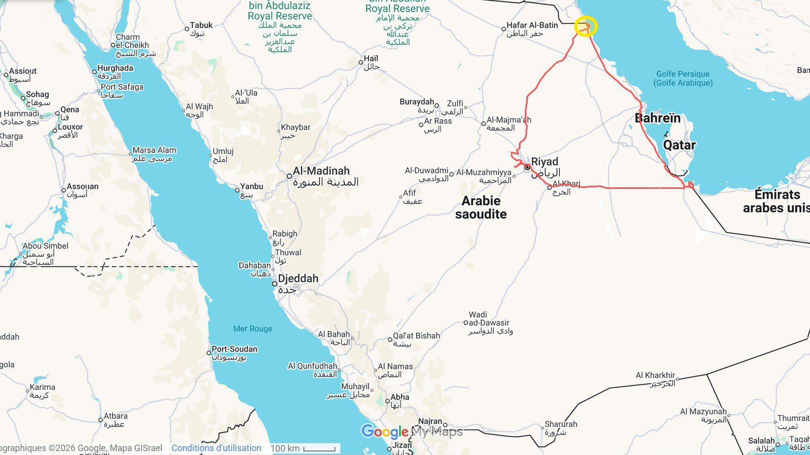 Après notre passage au Koweït, notre route continue vers le sud. Pour rejoindre les Émirats arabes unis, nous devons traverser une partie de l’Arabie Saoudite.