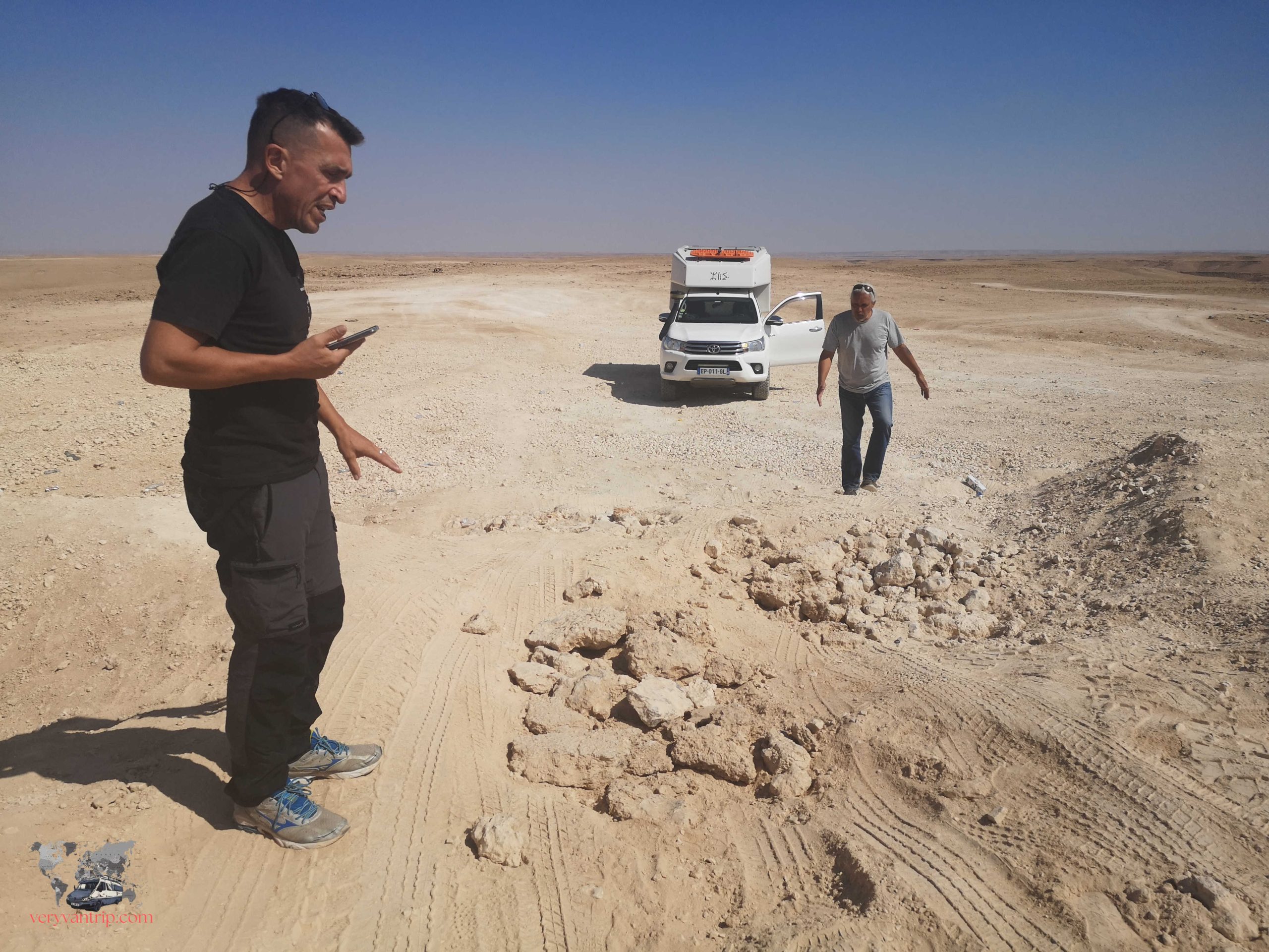 Pour ceux qui ne le savent pas : nous voyageons sans climatisation. La journée est longue et fatigante. Malheureusement, nous ne verrons ni oryx ni antilopes, pourtant présents dans la région. Mais traverser ces paysages désertiques reste malgré tout une expérience impressionnante.