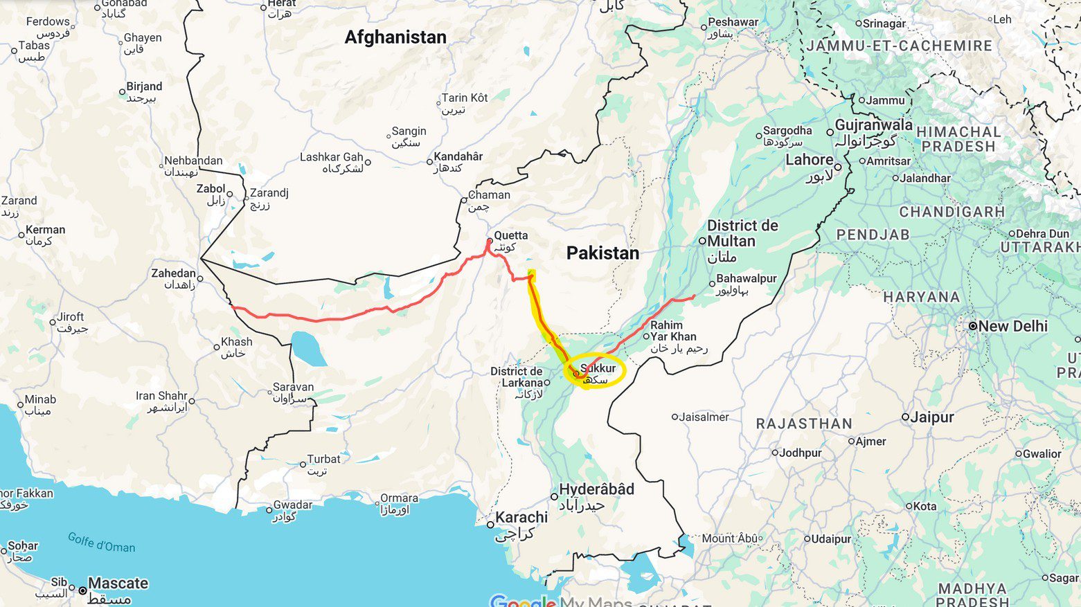 Seuls deux directions sont possibles, vers Islamabad au Nord et vers Sukkur au sud. Plusieurs voyageurs nous avaient dit que la route vers Sukkur était plus simple car au bout d’une journée d’escorte nous serions libres et pourrions enfin profiter du Pakistan. Nous décidons donc avec les motards de prendre cette route du sud et Alex et Wahid tentent de prendre un bus vers le nord.