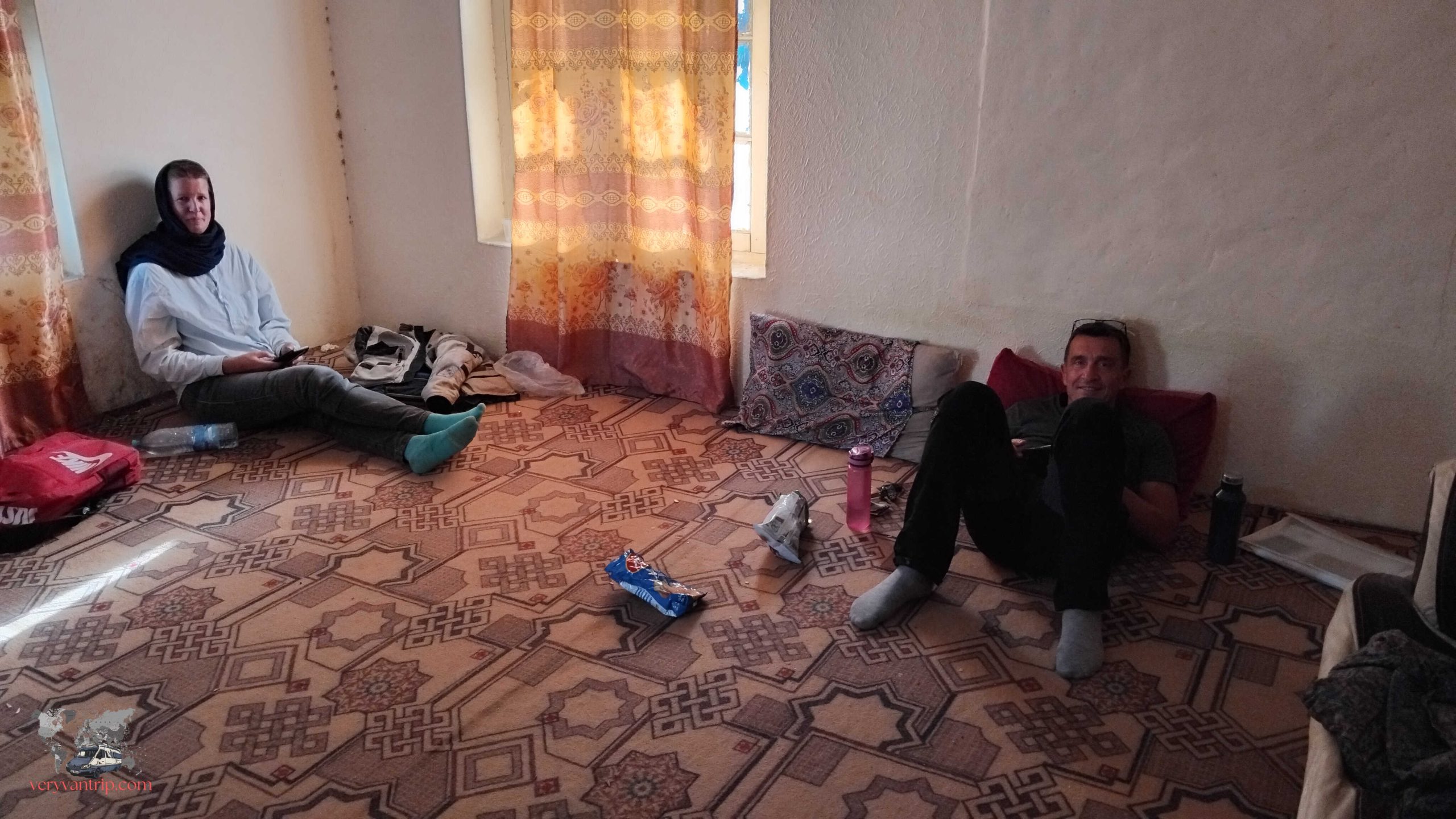 Nous décidons de nous arrêter à une centaine de mètres de la frontière et profiter d’une dernière nuit dans un caravansérail, bien connu des voyageurs, pour nous reposer et surtout bien nous préparer car les jours suivants mettront notre organisme et notre patience à rude épreuve.