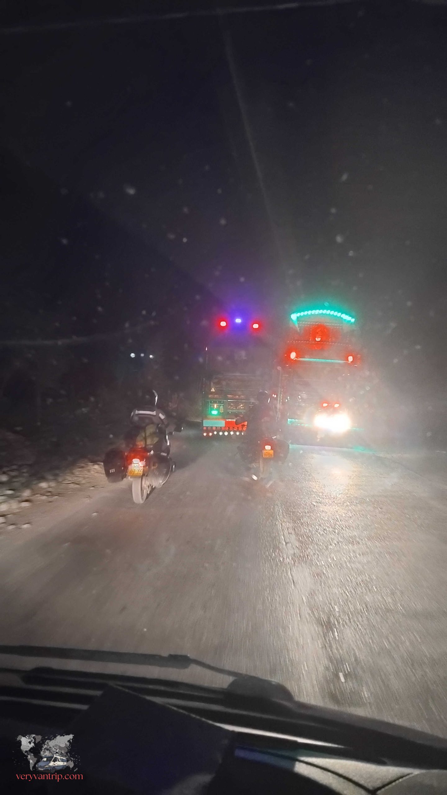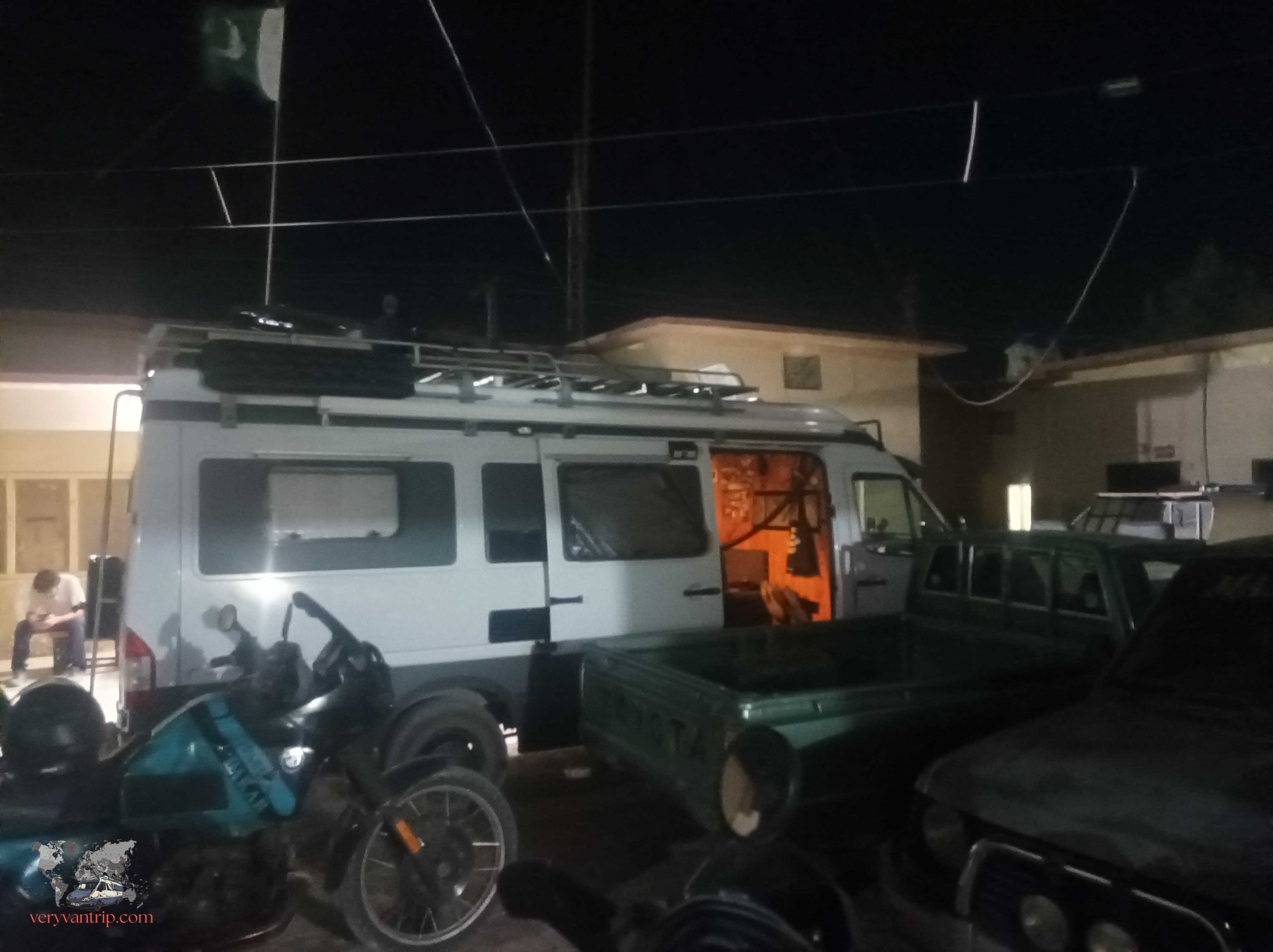 Malheureusement ce départ tardif nous a contraint de rouler de nuit et c’est vers 23h que nous faisons escale dans un poste de police pour passer la nuit.