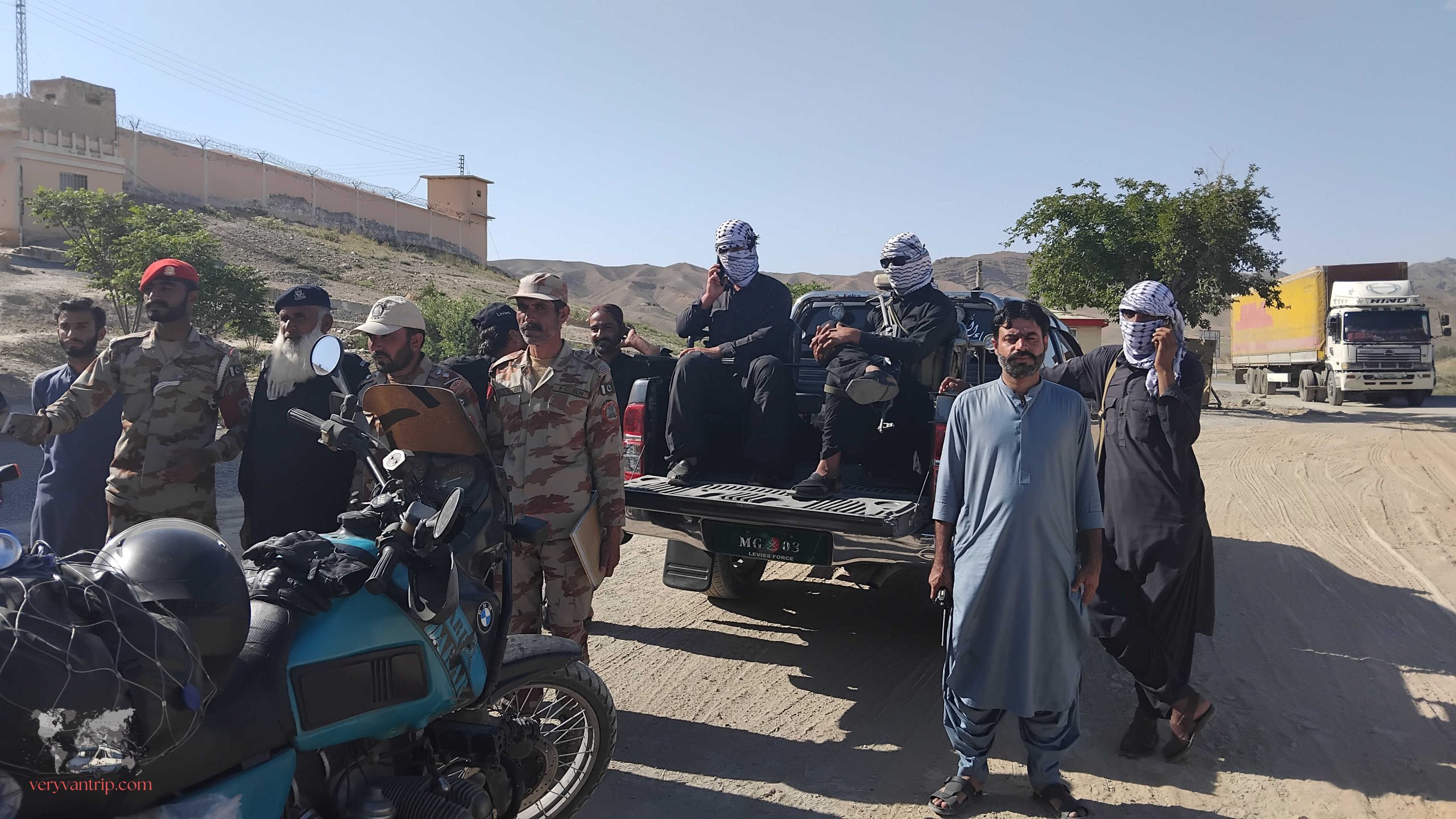 Sur la route menant à la frontière nous avons rencontrer un couple de motards Hollandais et un cycliste Espagnol. Nous décidons de passer la frontière ensemble car une escorte policière de plusieurs jours nous attend au Balouchistan.