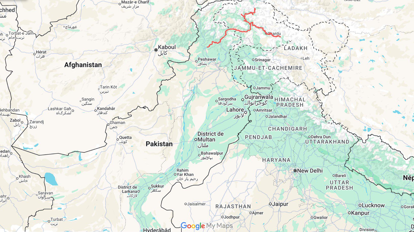 En regardant la carte de plus près, on réalise que le Ladakh, majoritairement indien, ne partage finalement aucune frontière directe avec le Pakistan. Depuis la partition des Indes en 1947, toute cette zone — entre Ladakh et Cachemire — reste un territoire sensible, disputé entre l’Inde, le Pakistan et la Chine. Nous n’avons donc pas pu continuer bien au-delà de Khaplu. Mais au fond, ce n’était pas si grave : nous sommes tombés sous le charme de l’atmosphère paisible de ces vallées.