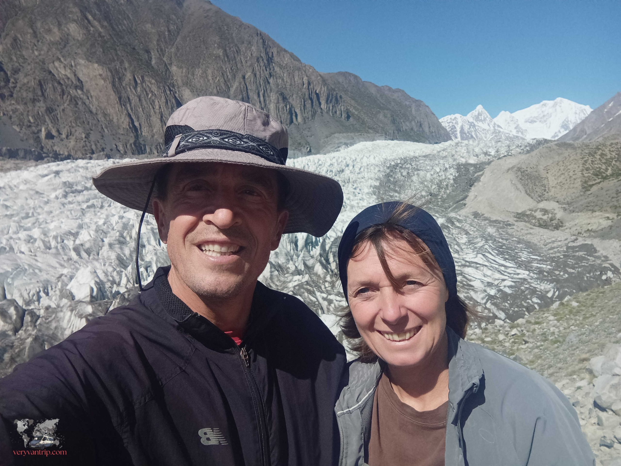 Depuis notre spot de parking, la vue sur les sommets enneigés était tout simplement fantastique. Notre randonnée matinale, totalement improvisée, vers le glacier blanc de Passu nous a coupé le souffle à deux reprises : d’abord par la montée, raide et interminable, puis par le panorama à l’arrivée, absolument incroyable.