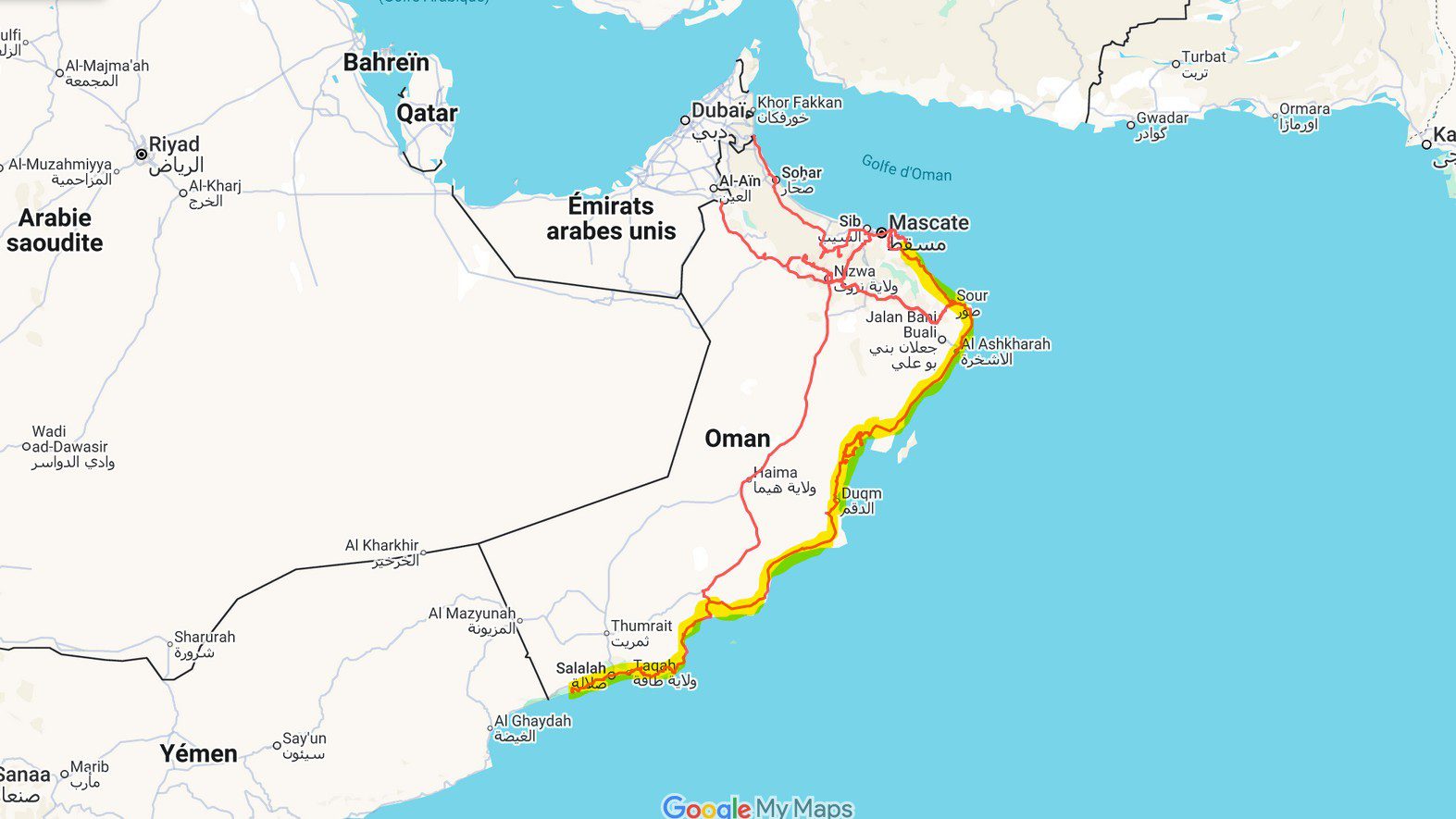 Oman possède également près de 1700 kilomètres de côtes. Il aurait été dommage de ne pas en profiter. Nous décidons donc de suivre la mer sur près de 1200 kilomètres pour rejoindre Salalah.