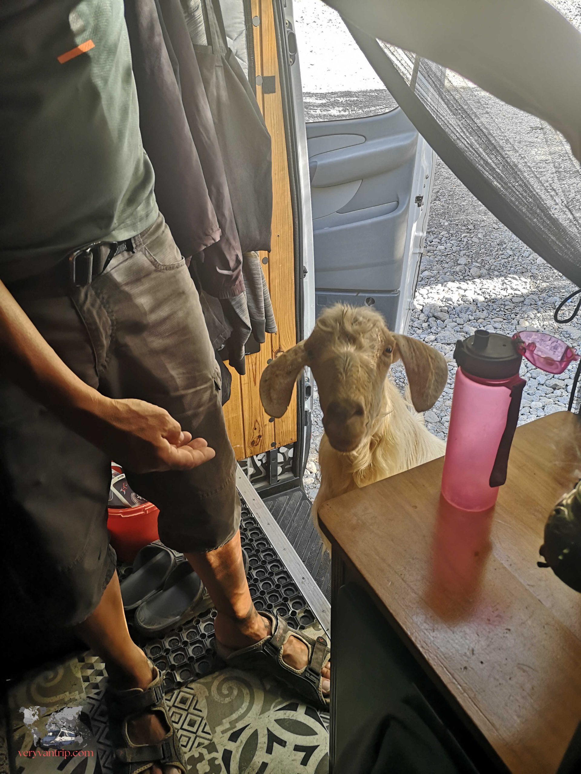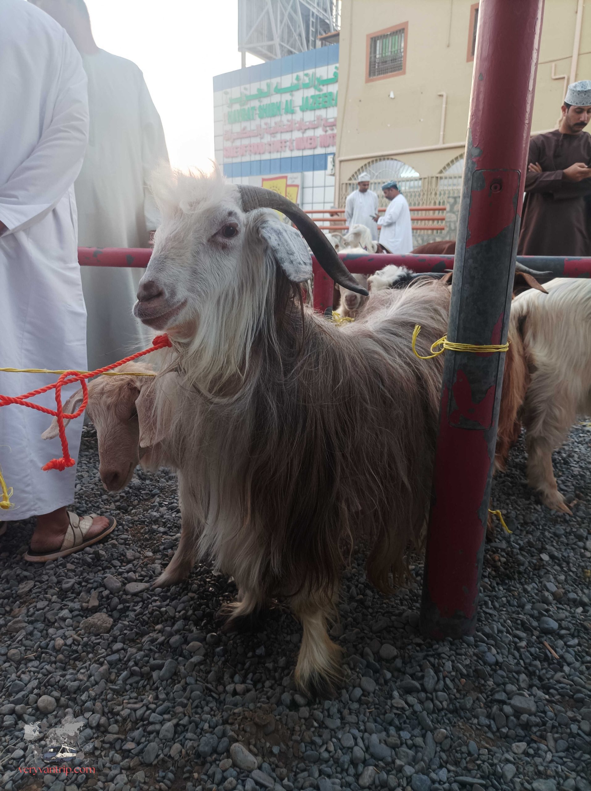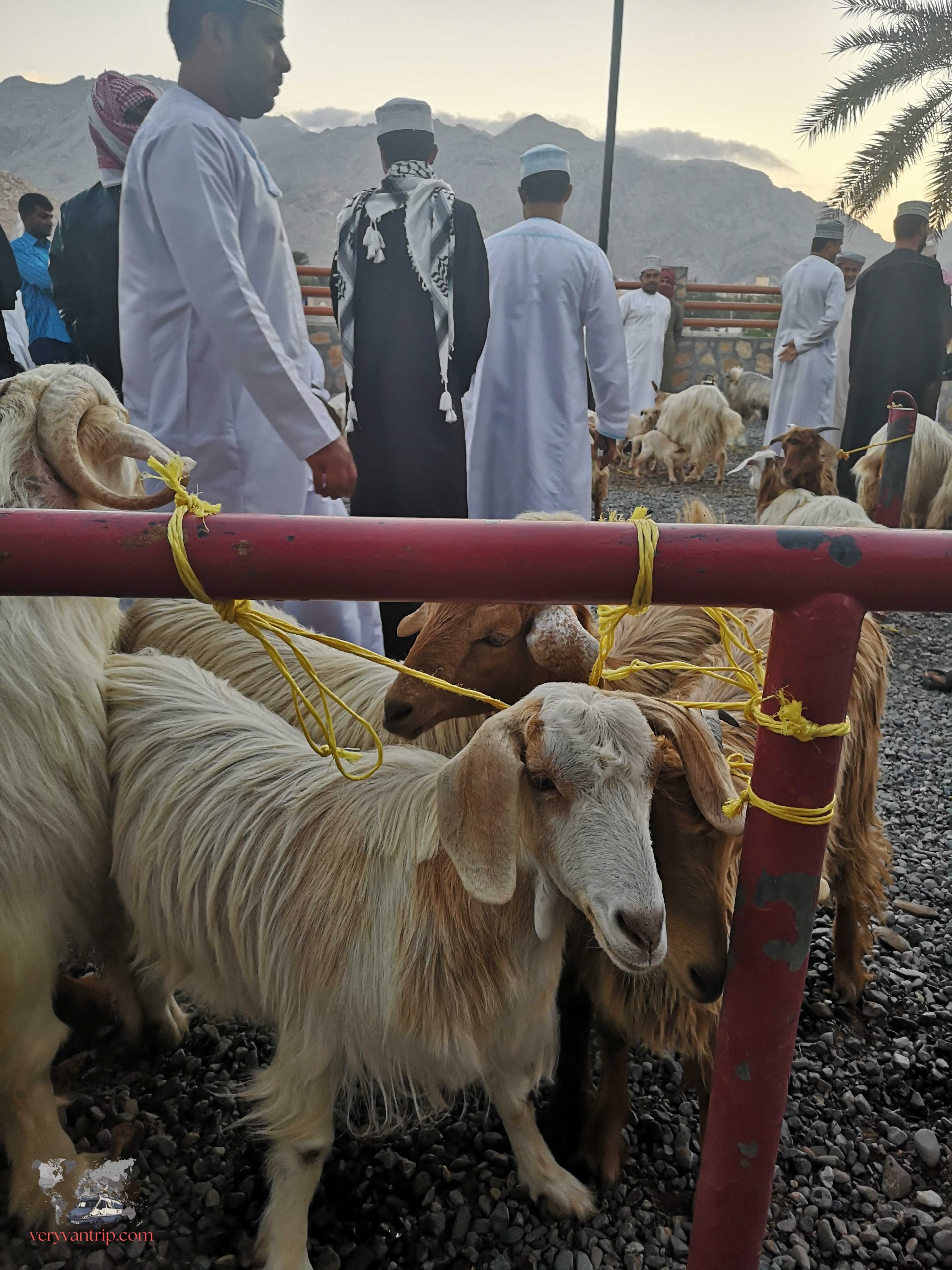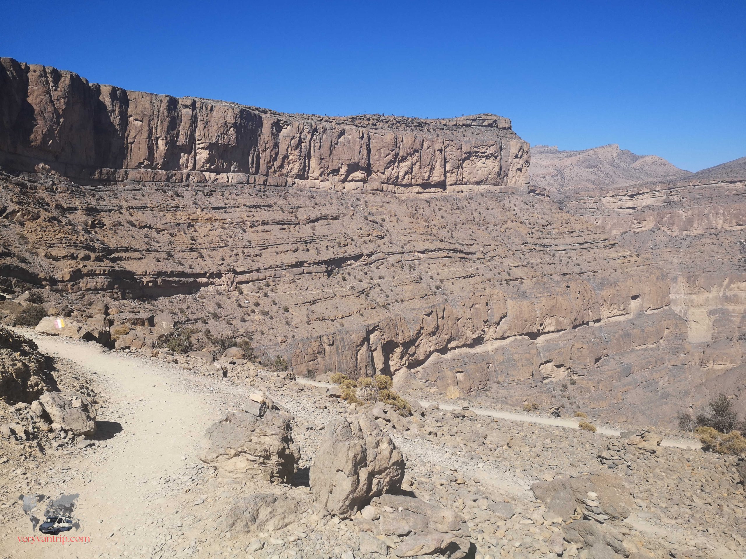 Impossible de parler des montagnes omanaises sans évoquer le Jebel Shams, le sommet le plus célèbre du nord du pays. La piste pour y accéder est parfois exigeante, mais après notre passage à Musandam, notre fourgon commence à s’habituer à ces montées spectaculaires. Une fois arrivés en haut, le panorama est à la hauteur de l’effort. Et comme souvent dans ces montagnes, nous ne sommes pas seuls. Quelques chèvres, visiblement très curieuses, viennent nous observer de près.