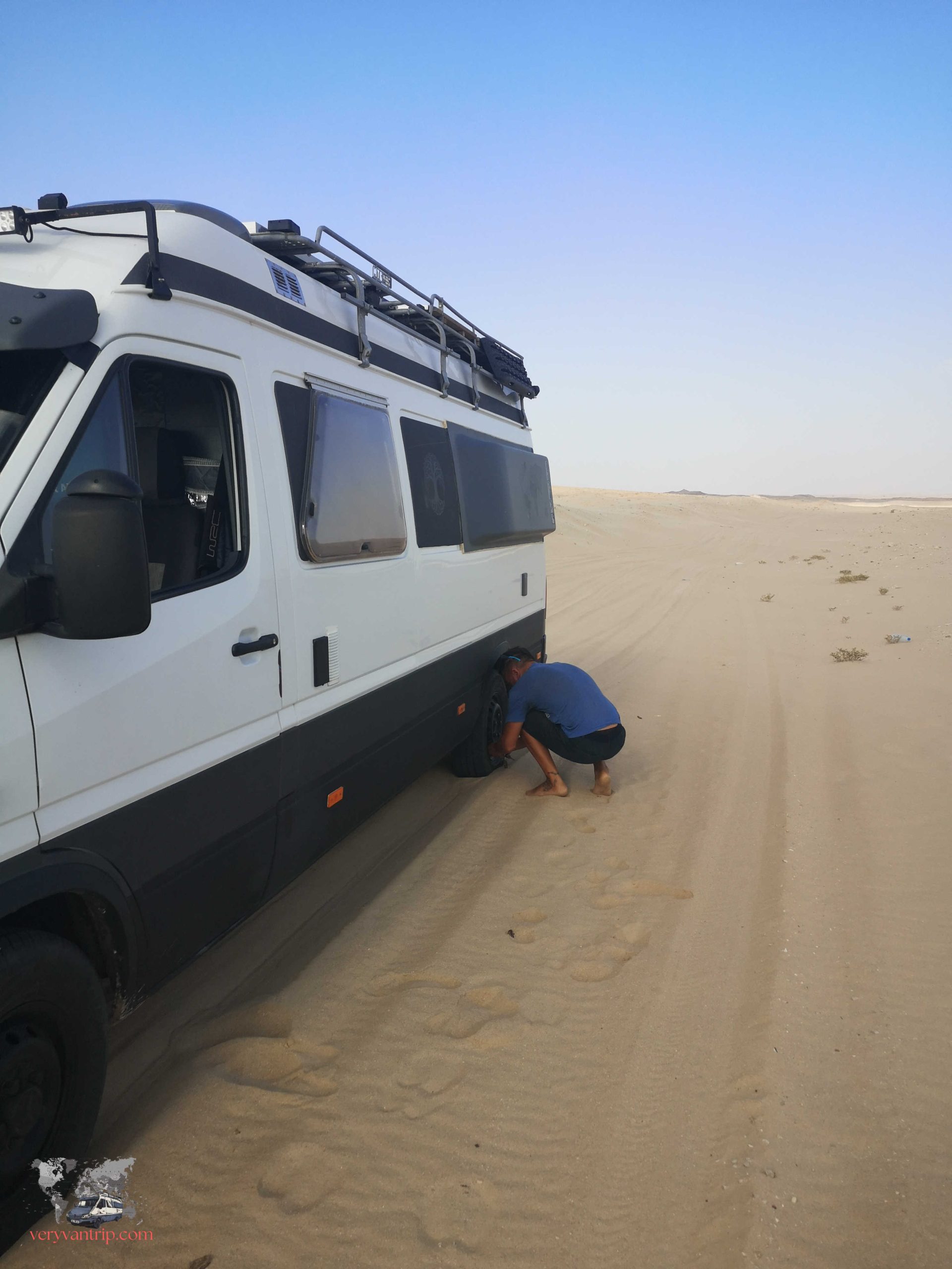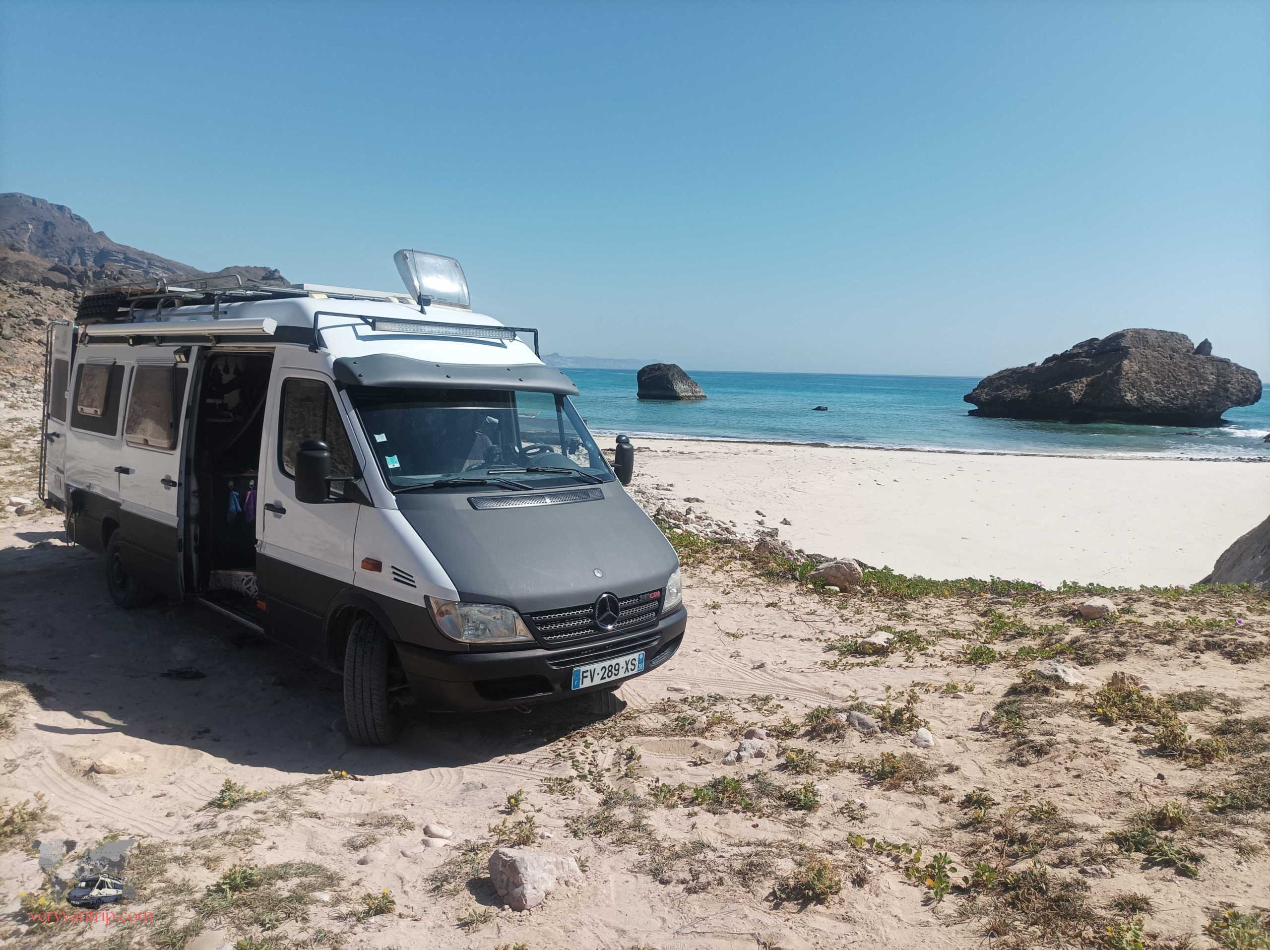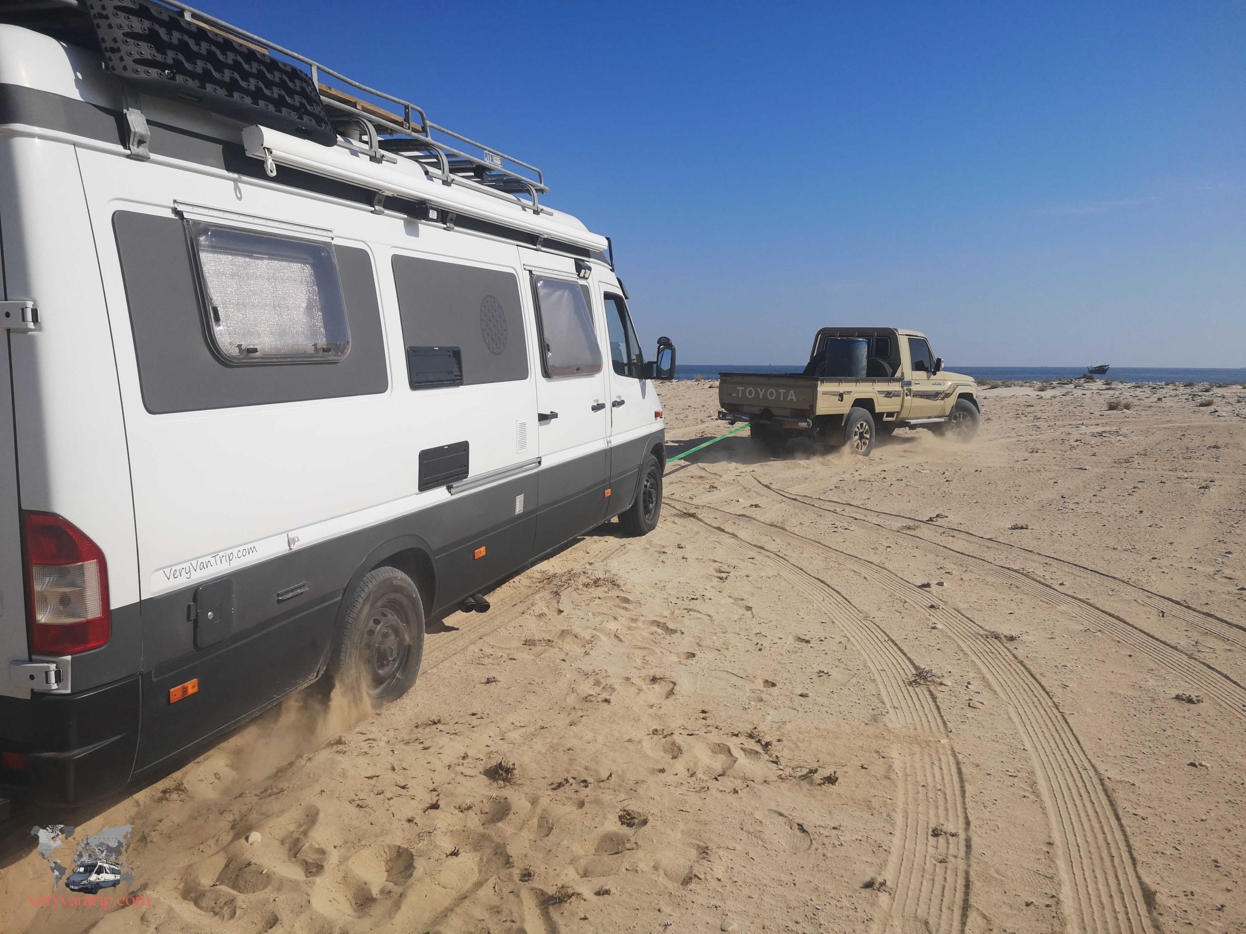 Nous découvrons tout de même un autre petit désert, les Sugar Dunes, ainsi qu’un lac salé en descendant vers Salalah. Nous réussissons à faire des pistes et rouler sur la plage pour trouver des spots directement au bord de l’eau. C’est également là que nous connaissons notre seule mésaventure dans le sable. Au bout d’un moment un excés de confiance m’a quand même valu une petite frayeur… Cette fois le sable mou à été plus fort que moi et nous nous sommes retrouvés tanqués dans le sable. Heureusement un omanais avec son Toyata Land Cruiser qui passait par là a pu nous tirer et sortir notre fourgon de 3,5 tonnes.