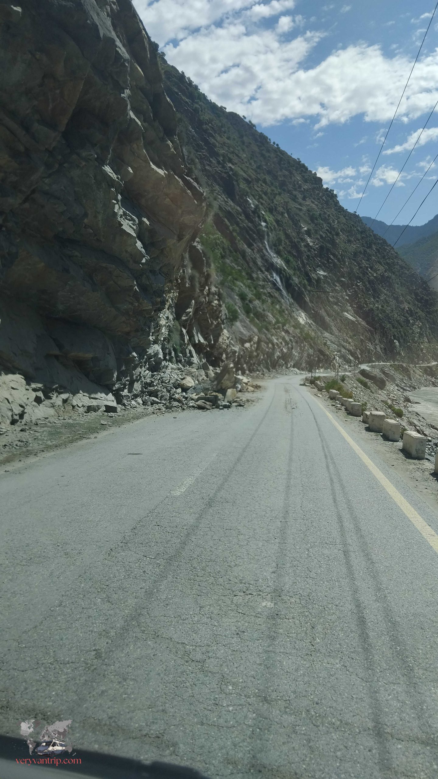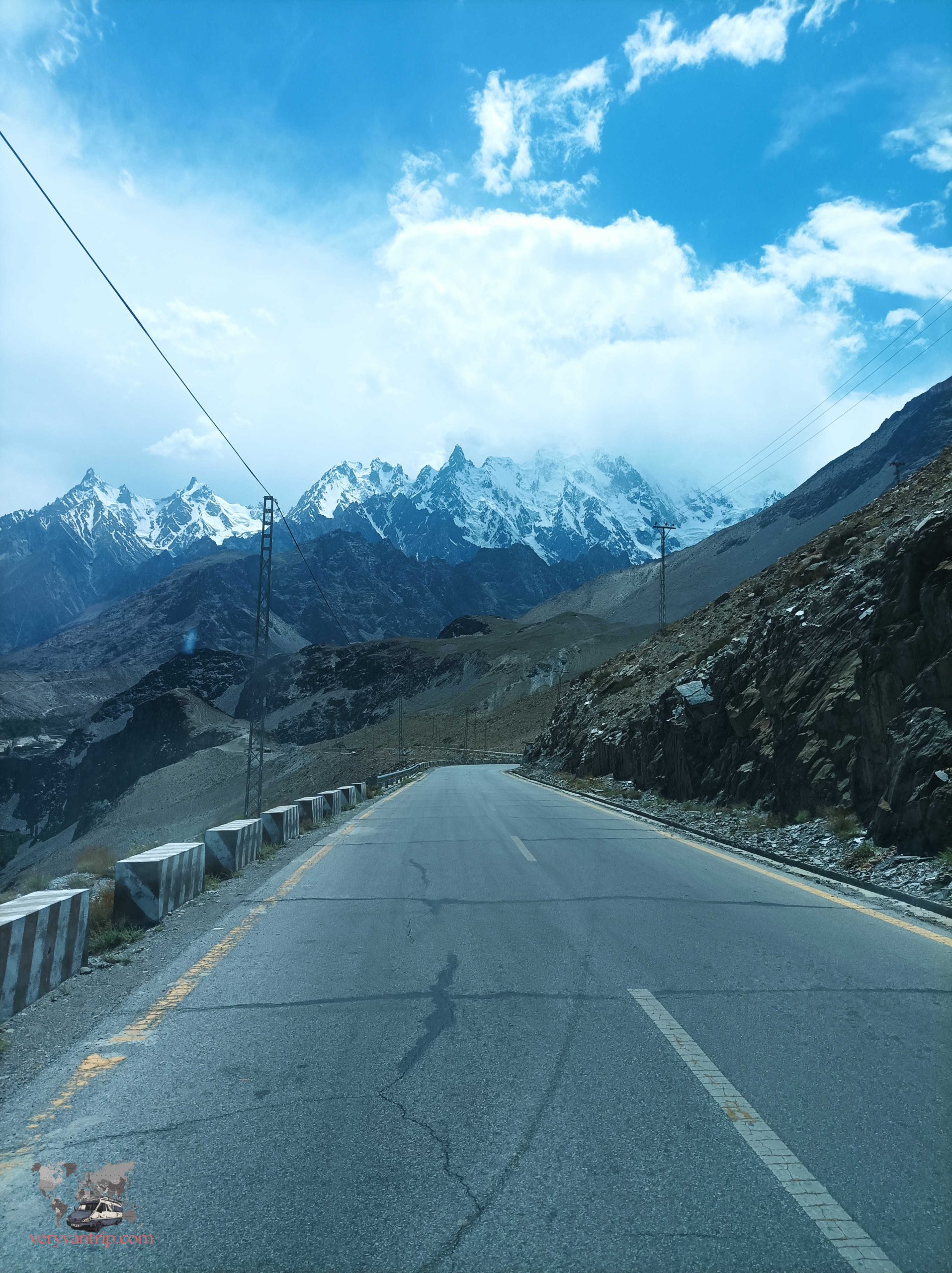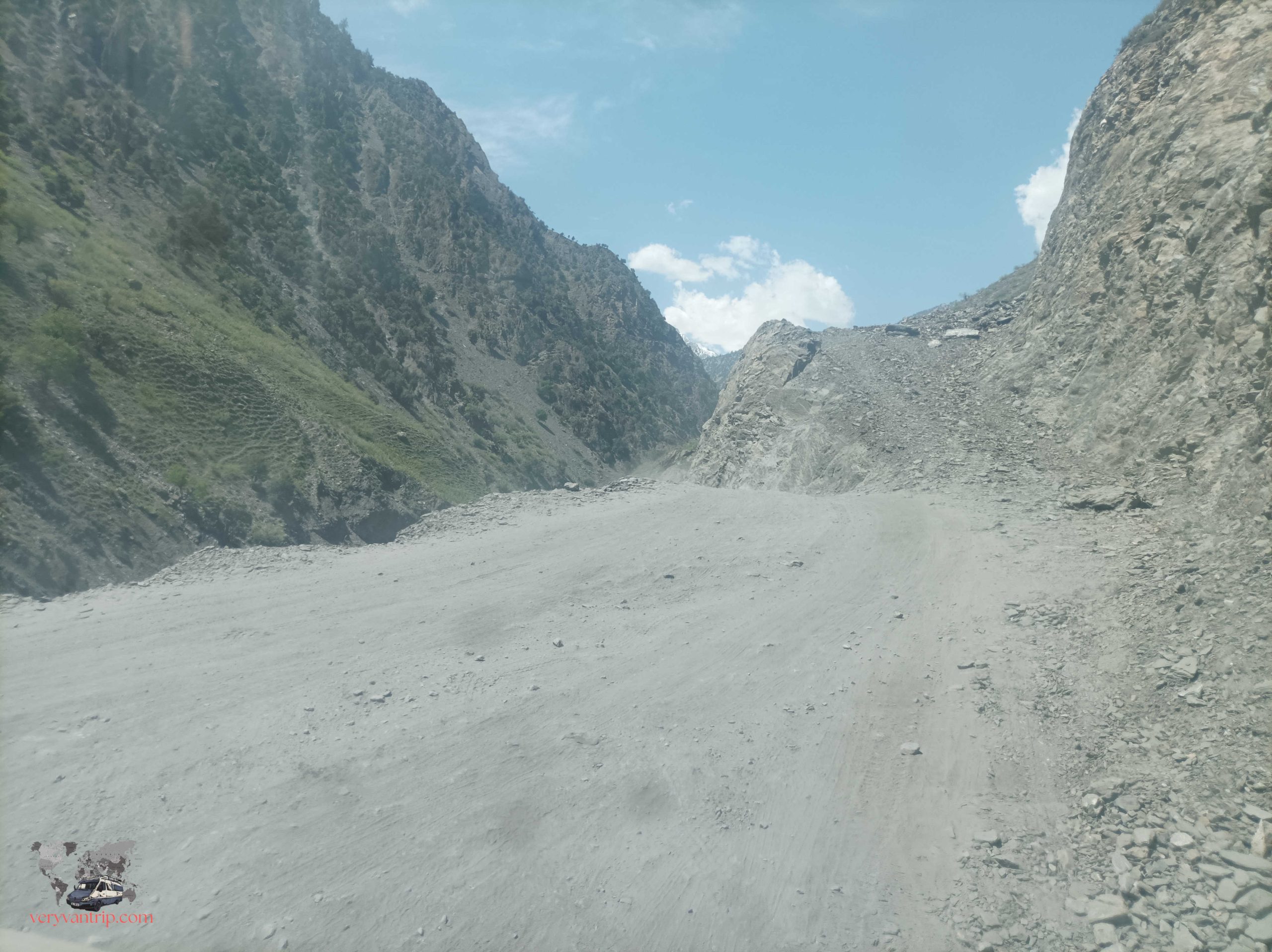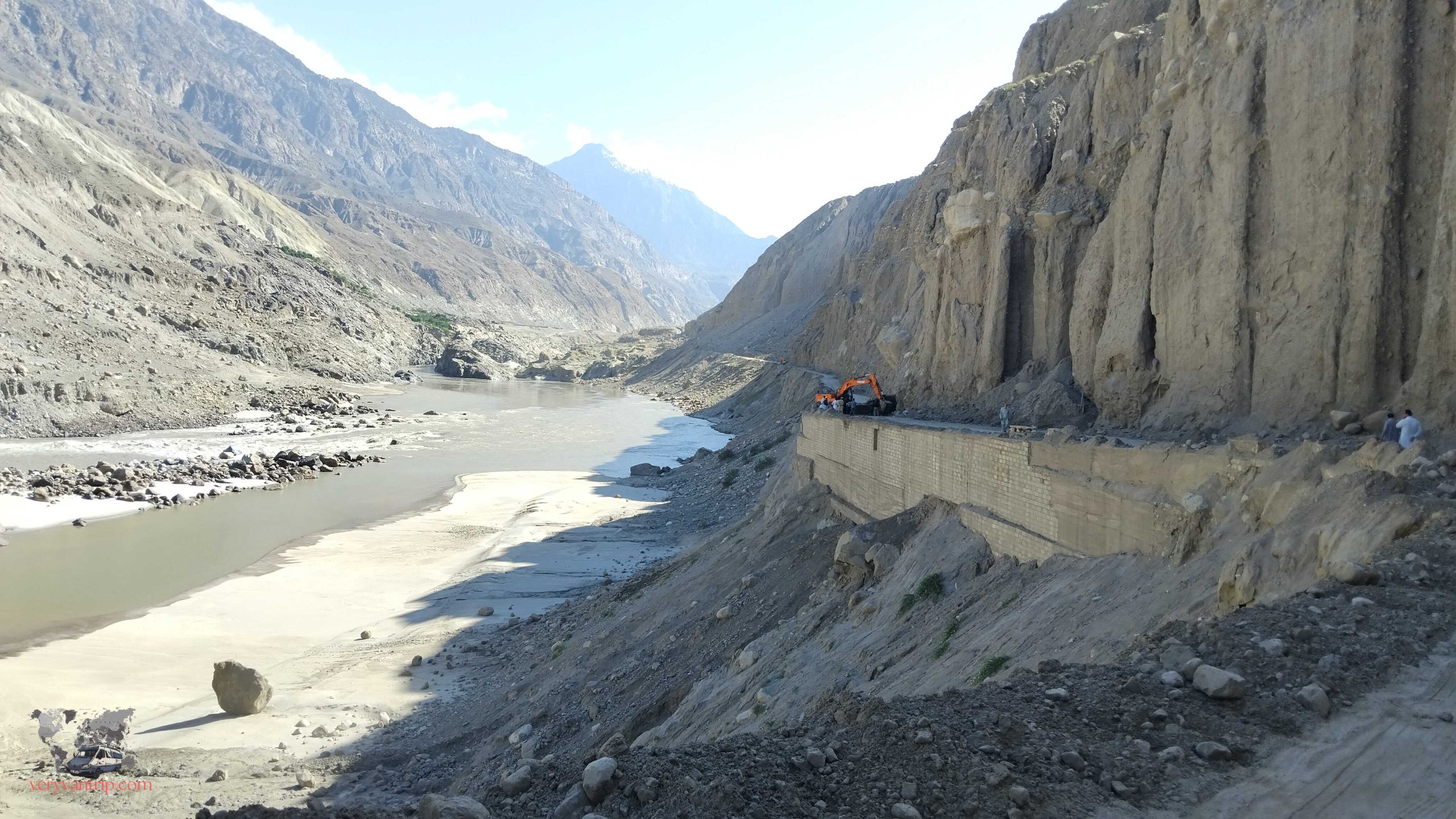 L’autoroute du Karakorum est l’une des routes les plus spectaculaires et les plus aventureuses du Pakistan. Depuis 1978, elle relie la Chine et le Pakistan sur environ 1300 kms, en traversant la chaine de montagnes du Karakorum à une altitude maximale de 4714 mètres au Khunjerab pass, la frontière avec la Chine. En raison des importants travaux de construction et des grandes hauteurs qu’elle traverse, la KKH est parfois surnomée la huitième merveille du monde, mais aussi car elle se faufile entre une multitude de montagnes allant de 4000 à 8000 mètres. Après être revenus de Chitral et repassés par la vallée de Swat, nous commençons notre première étape sur cette route mythique. Cela commence par des vues splendides, cependant, le terme « Highway » crée une fausse impression. Sur plusieurs kms la route ressemble à un chemin de terre, sur d’autres tronçons elle n’est qu’à voie unique et régulièrement la route est accidentée avec de grands trous dans l’asphalte. Encore une fois, si l’on pense européen et qu’on emprunte une autoroute on peut s’attendre à quelque chose de rapide, mais non car il nous faudra plus de deux jours pour faire les quelques 400 kms qui nous séparent de Gilgit notre prochaine destination.