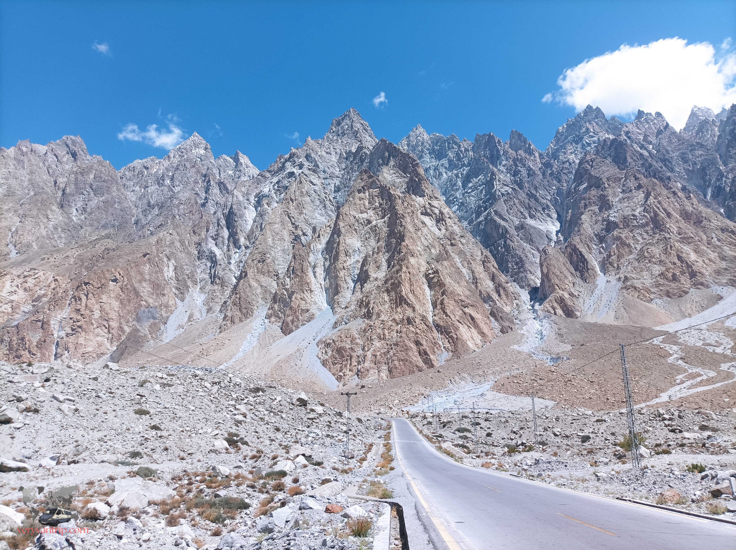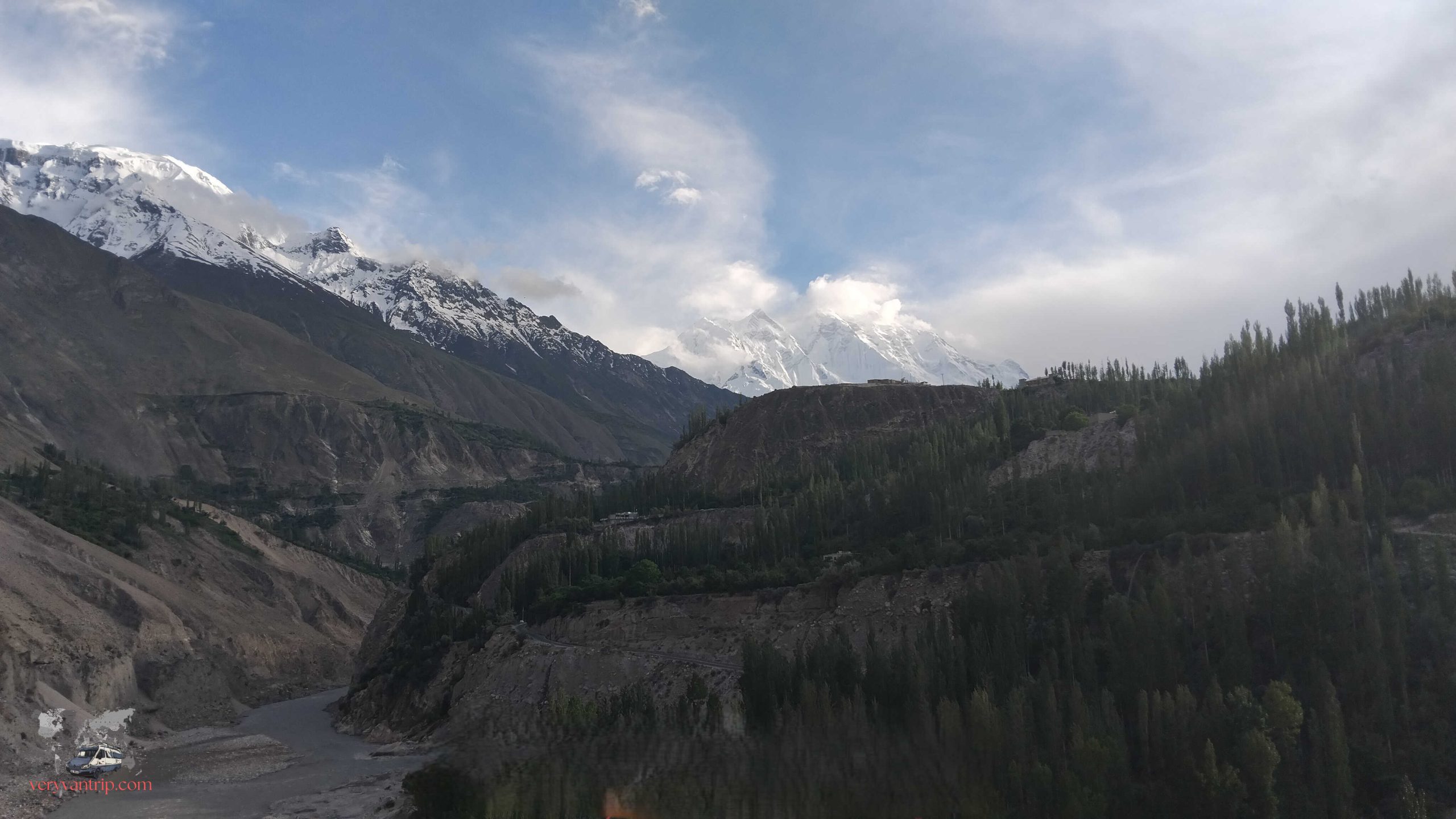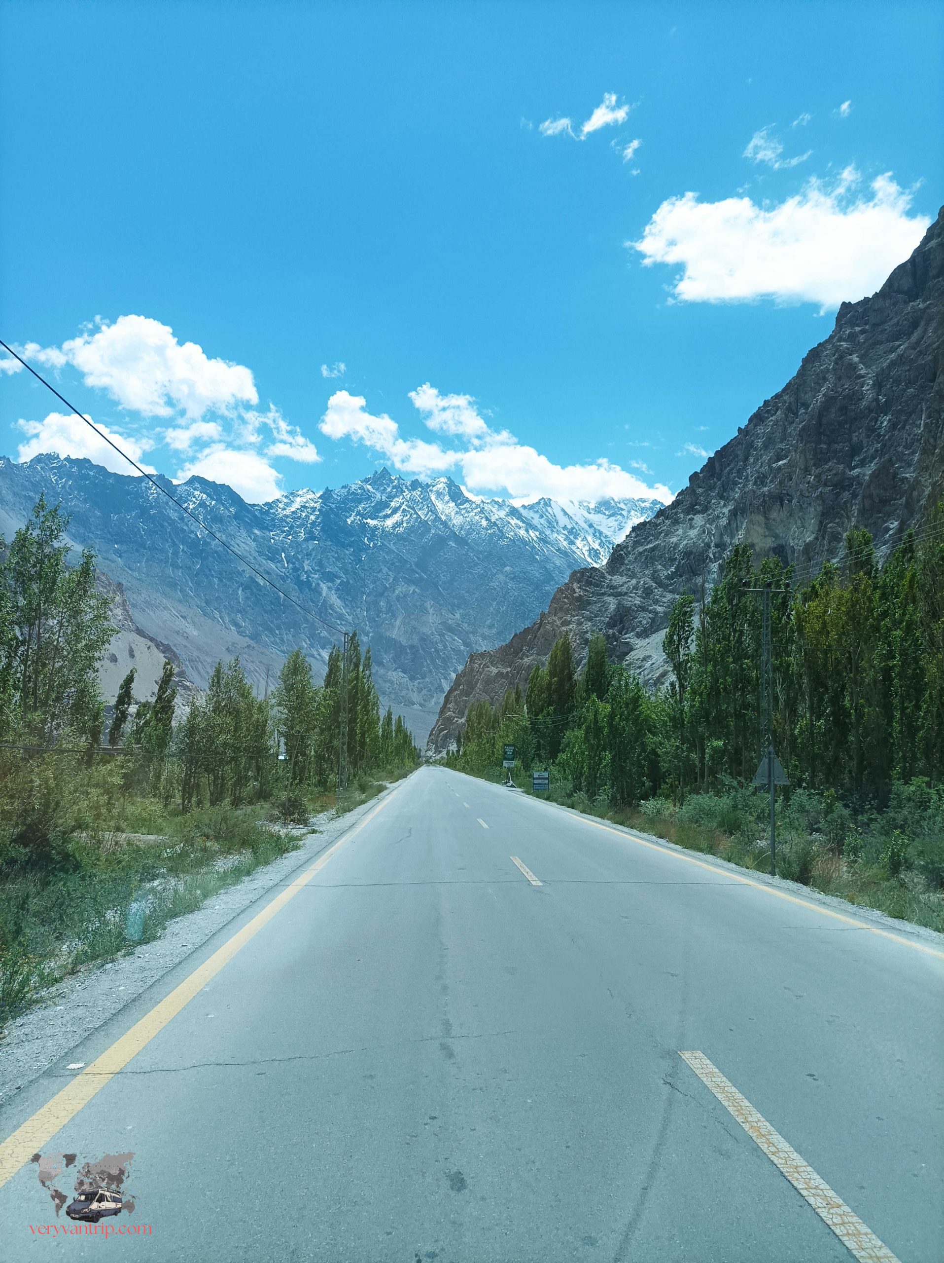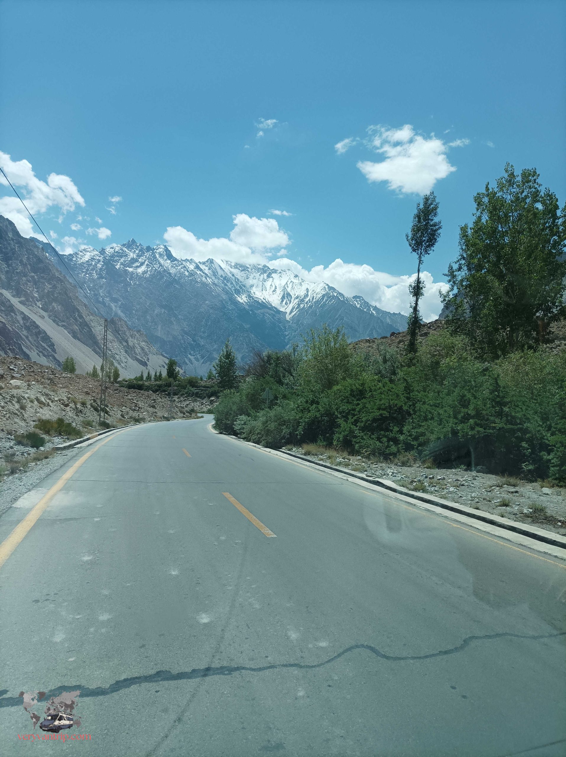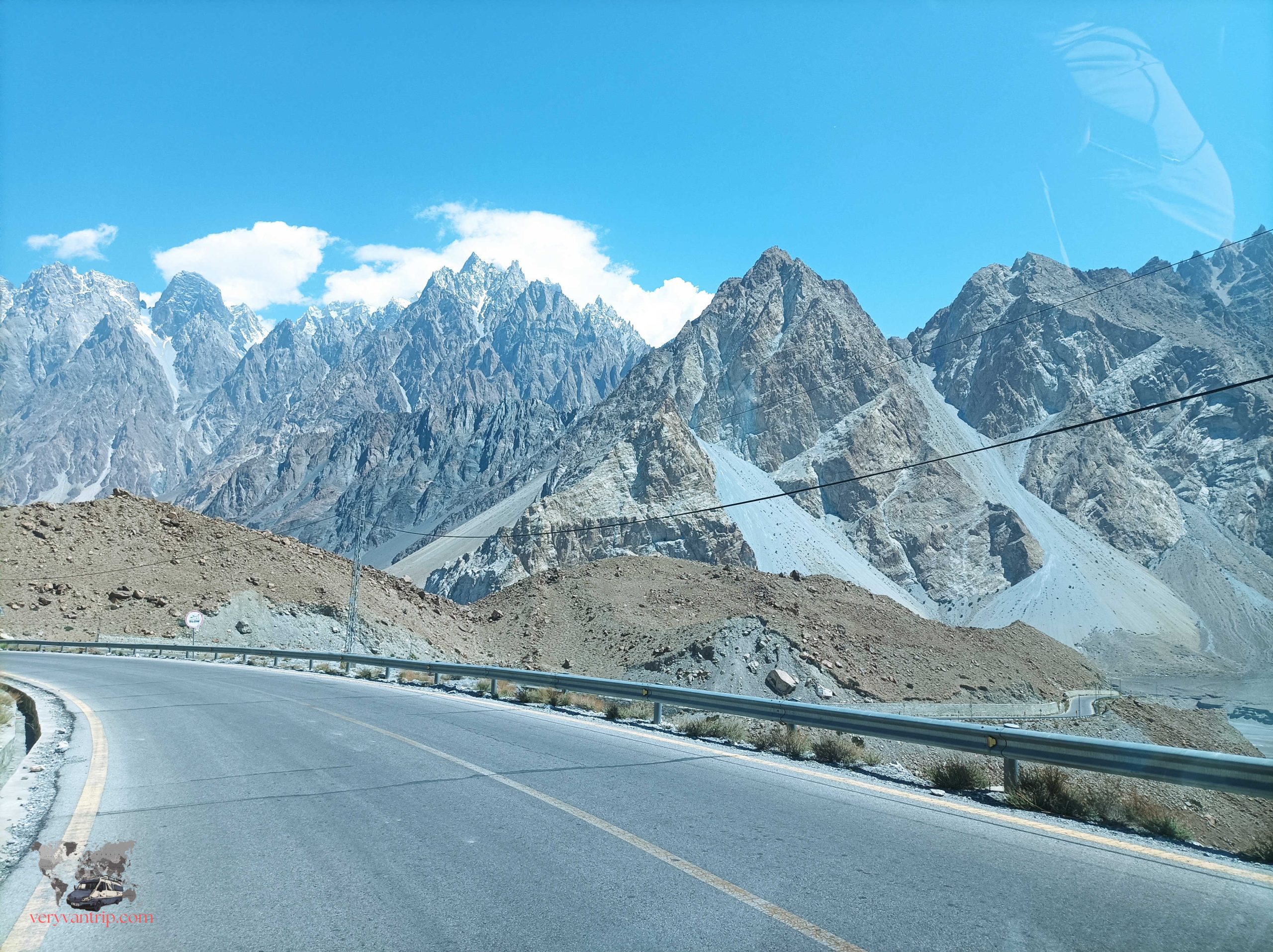L’autoroute du Karakorum est l’une des routes les plus spectaculaires et les plus aventureuses du Pakistan. Depuis 1978, elle relie la Chine et le Pakistan sur environ 1300 kms, en traversant la chaine de montagnes du Karakorum à une altitude maximale de 4714 mètres au Khunjerab pass, la frontière avec la Chine. En raison des importants travaux de construction et des grandes hauteurs qu’elle traverse, la KKH est parfois surnomée la huitième merveille du monde, mais aussi car elle se faufile entre une multitude de montagnes allant de 4000 à 8000 mètres. Après être revenus de Chitral et repassés par la vallée de Swat, nous commençons notre première étape sur cette route mythique. Cela commence par des vues splendides, cependant, le terme « Highway » crée une fausse impression. Sur plusieurs kms la route ressemble à un chemin de terre, sur d’autres tronçons elle n’est qu’à voie unique et régulièrement la route est accidentée avec de grands trous dans l’asphalte. Encore une fois, si l’on pense européen et qu’on emprunte une autoroute on peut s’attendre à quelque chose de rapide, mais non car il nous faudra plus de deux jours pour faire les quelques 400 kms qui nous séparent de Gilgit notre prochaine destination.
