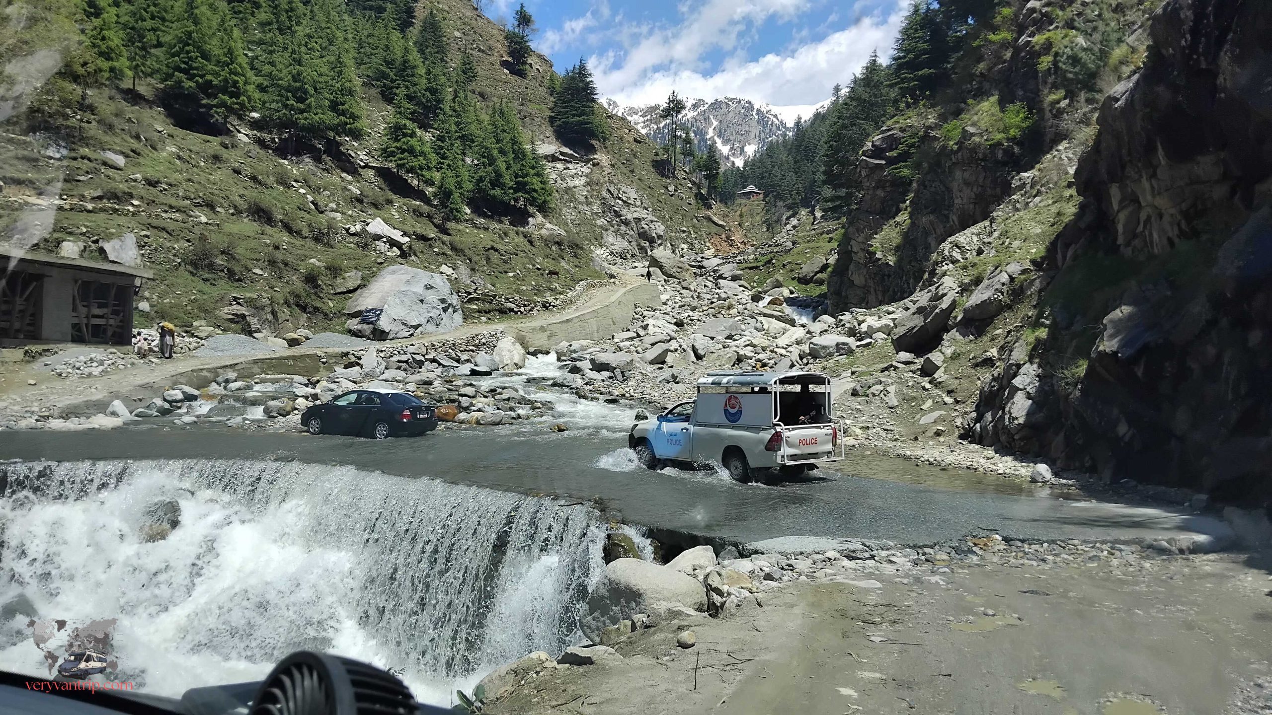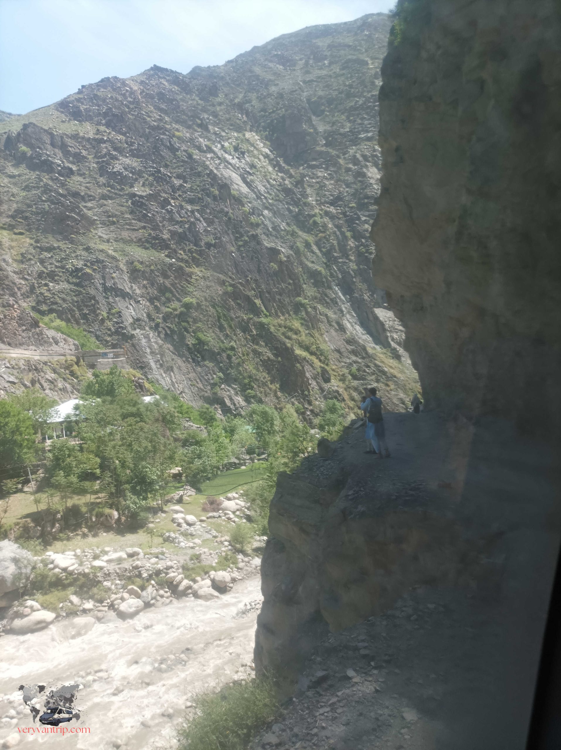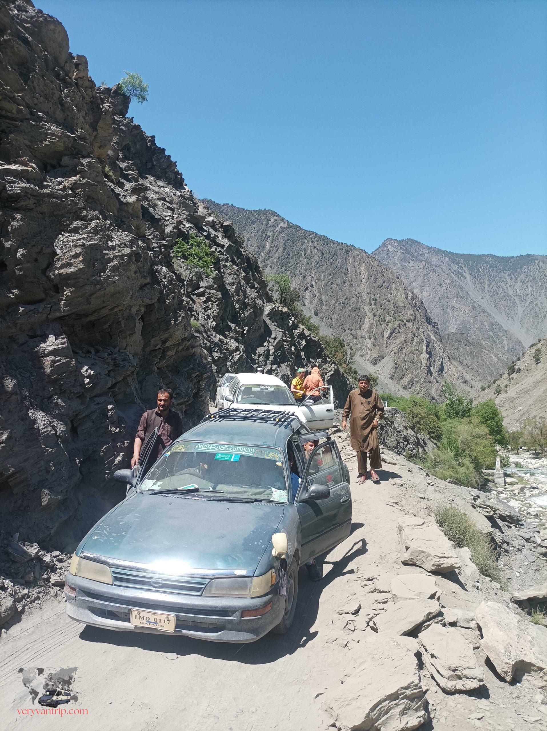 A Chitral, nous devons laisser notre fourgon, car malheureusement pour se rendre dans la vallée de Bamboret, seuls les taxis locaux et les 4×4 peuvent y accéder. C’est à environ deux heures de piste (30 kms environs), aucune route n’a jamais été construites, et la plupart du temps seule une voiture a la place de passer sans aucune protection pour des tombants pouvant atteindre plus de 50 mètres. Je dois avouer que les locaux, même s’ils conduisent très mal, se révèlent très habiles dans ce genre d’exercice.
